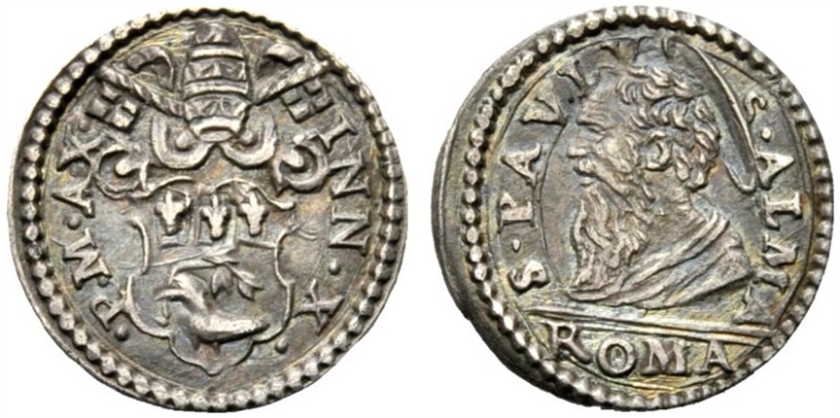 Dr. INN X P M A X Stemma a targa. Rv. S PAVLV S ALMA Busto del Santo a s.