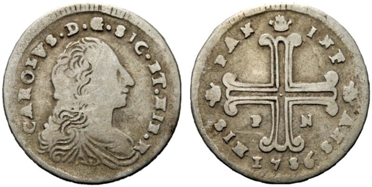 Dr. CAROLVS D G SIC ET HIE R Busto drappeggiato a d. Rv. HIS PAN INF ANS Croce greca con bracci scanalati; in basso ai lati, sigle, P N.