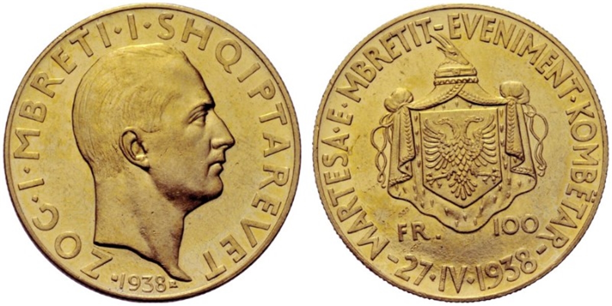 ALBANIA - Re Zogu I, 1925-1939. - Da 100 Franga Ari 1938 Roma.