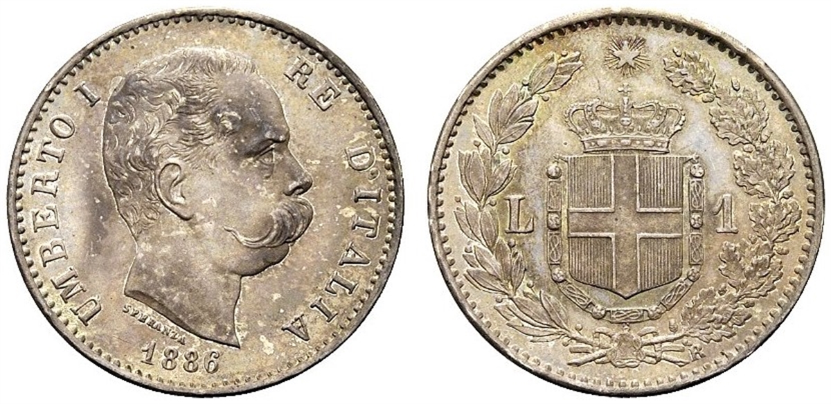 Umberto I, 1878-1900. Lira 1886 Roma.