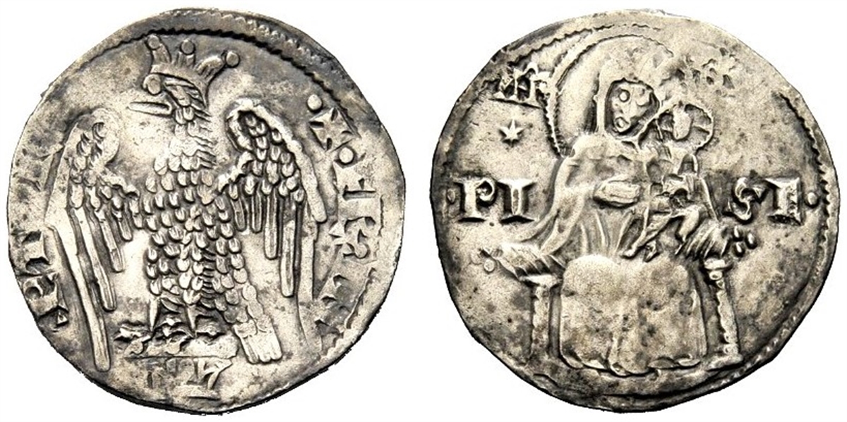 PISA - Repubblica, emissioni a nome di Federico I Imperatore, 1155-1312. - Grosso con la Beata Vergine e l’aquila, simbolo stella.