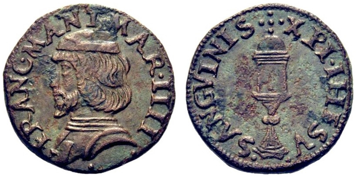Dr. FRANC MAR MA IIII Busto a s., barbuto ed in abito civile, con berretto. Rv. SANGVINIS XPI IHESV La Pisside.