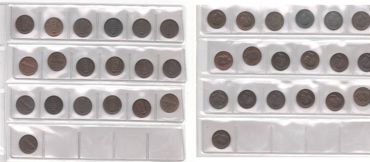 Autorità emittenti varie. Lotto comprendente n. 19 esemplari del 5 Centesimi Spiga dal 1919 al 1937, mancano il 1926 ed il 1936 con alcune ripetizioni.