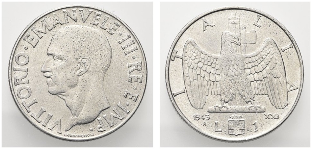 REGNO D’ITALIA - Lotto di n 6 monete da una Lira dal 1939 a. XVII (anti magn.), 1939 a. XVIII (anti magn.), 1940 (anti magn.), 1941, 1942 e 1943 Impero.