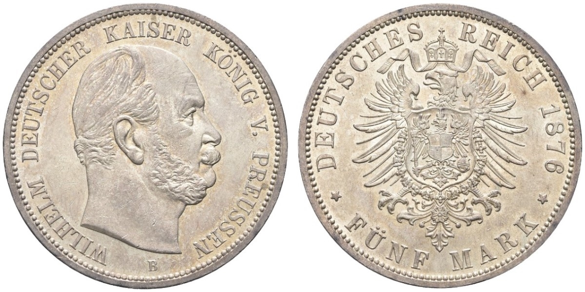 GERMANIA - Prussia. Wilhelm I, 1861-1888. - 5 Marchi 1876 B.