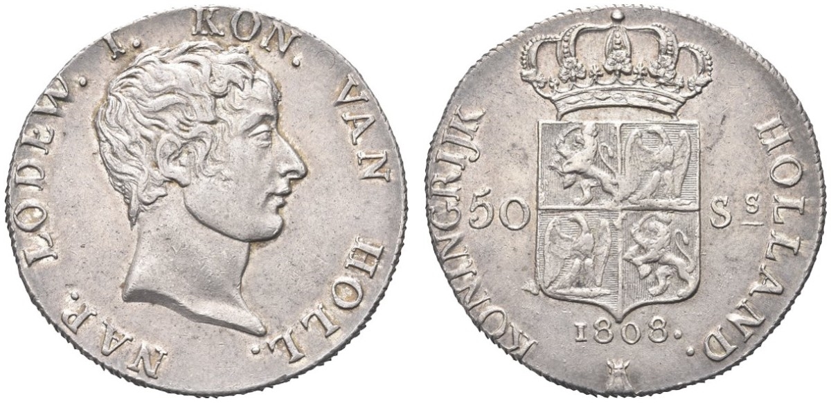 Regno d’Olanda. Luigi Napoleone, 1806-1810. 50 Stuiver 1808, zecca di Utrecht.