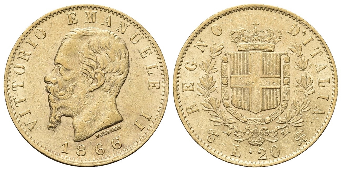 Vittorio Emanuele II, 1861-1878. 20 Lire 1866 Torino.