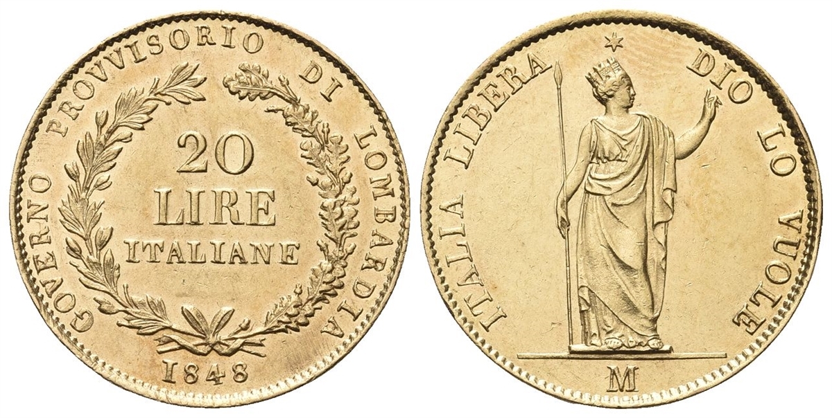 Governo Provvisorio di Lombardia, 1848. 20 Lire 1848.