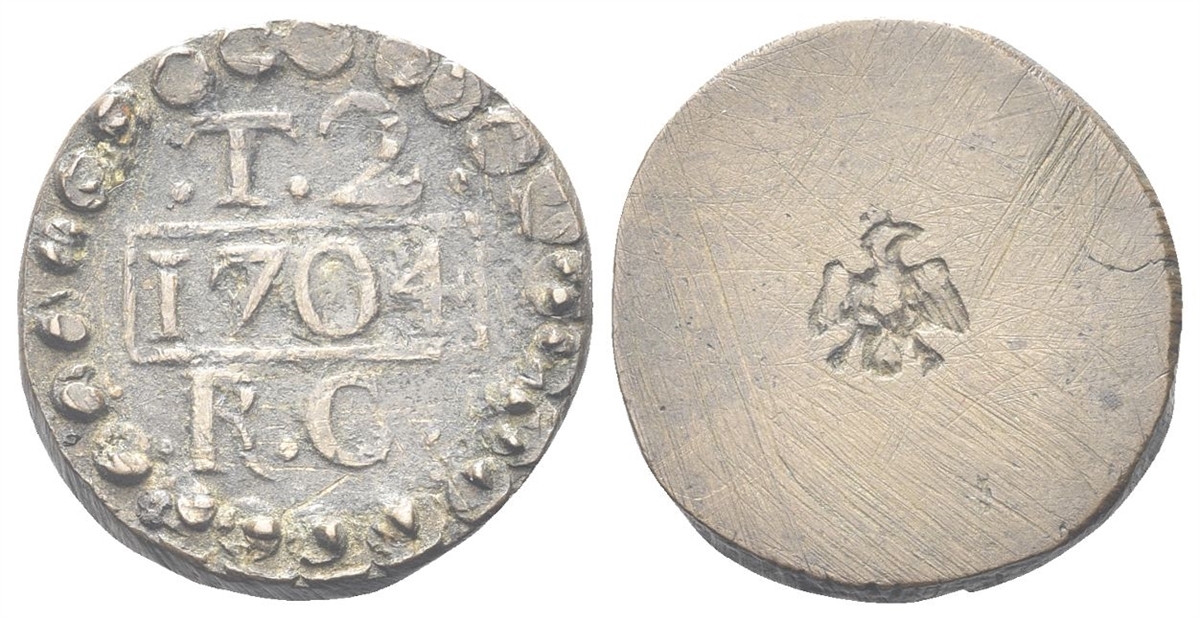 Dr. Sigle in tre righe. Rv. Legenda cufica.