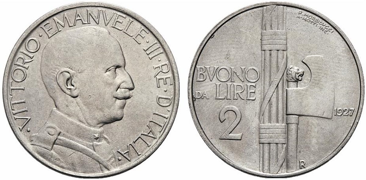 Vittorio Emanuele III, 1900-1943. Buono da 2 Lire 1927 Roma, Fascio.