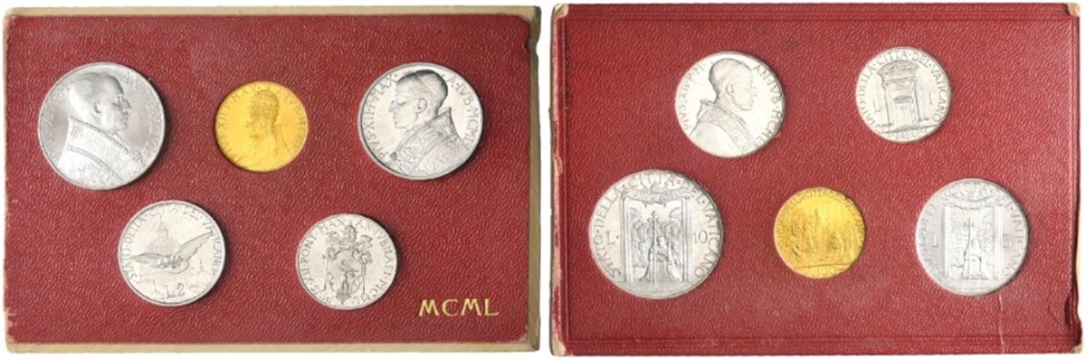 Pio XII (Eugenio Pacelli), 1939-1958. Serie Giubileo 1950 comprese le 100 Lire in oro