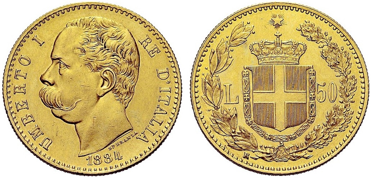Umberto I, 1878-1900. 50 Lire 1884 Roma.