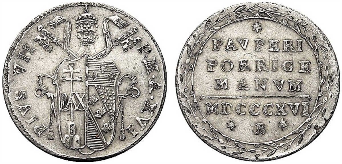 Pio VII (Barnaba Gregorio Chiaramonti), 1800-1823. Grosso 1816 a. XVII.