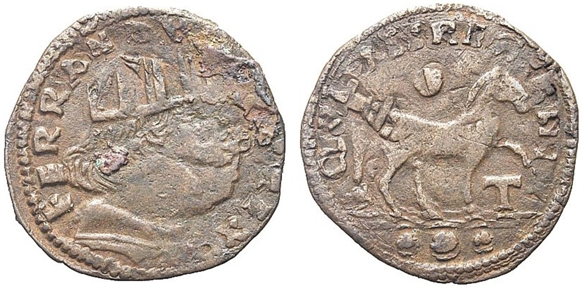 Ferdinando II d’Aragona (Ferrandino), 1495-1496. Cavallo (ribattuto) di corvo VIII per l’aquila.