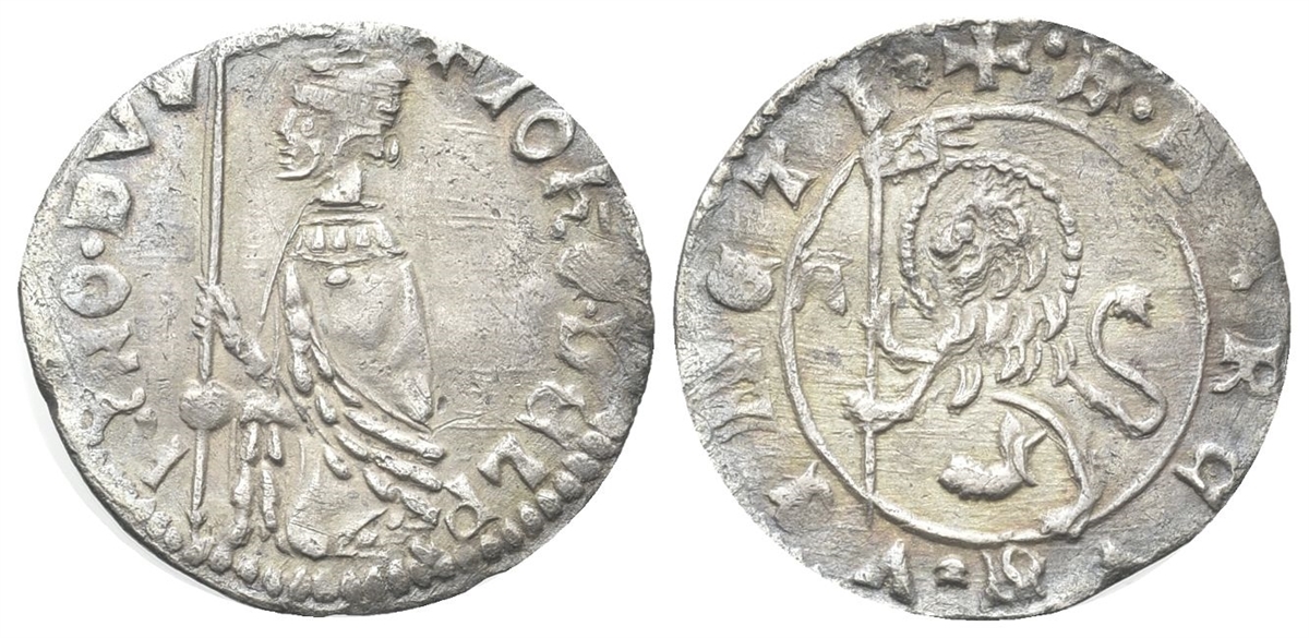 Dr. IO DOLP - hYNO DVX. Il Doge inginocchiato verso s., tiene vessillo. Rv. S MARCVS VENET. Leone vessillifero verso s.; a s., A.