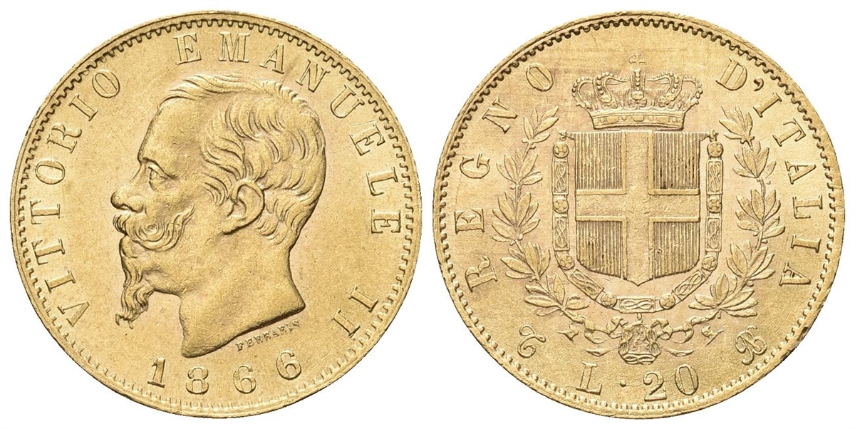Vittorio Emanuele II, 1861-1878. 20 Lire 1866 Torino.