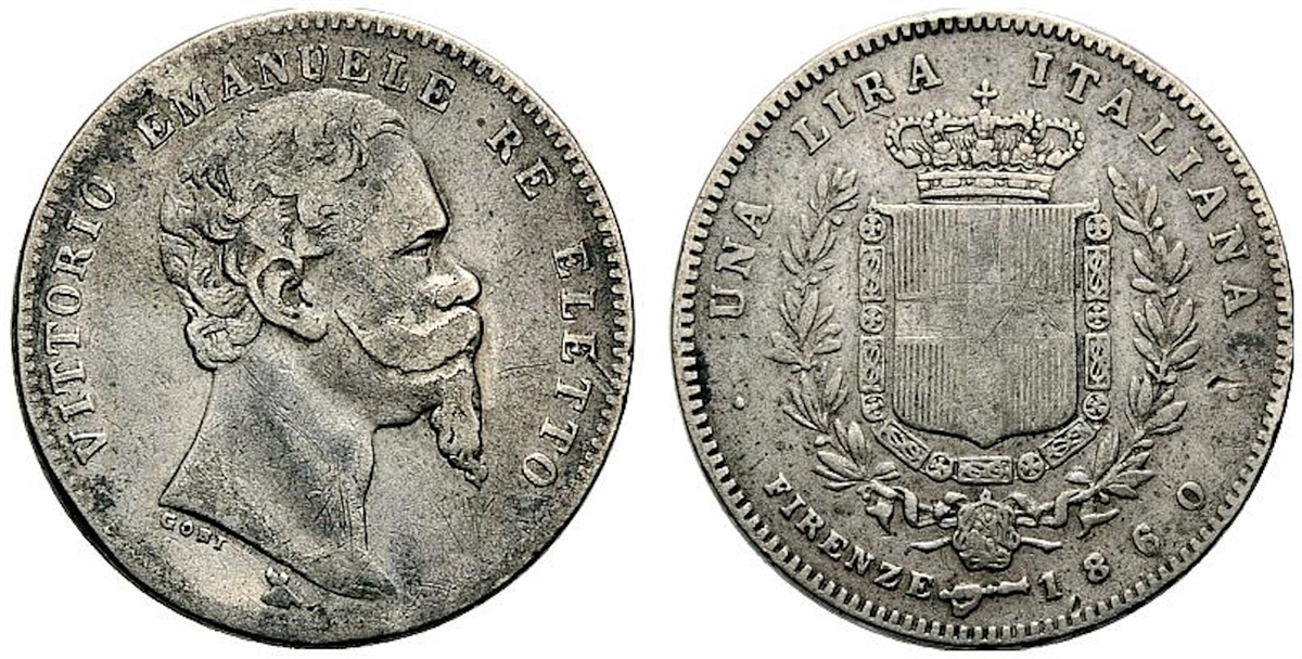 RE ELETTO - Vittorio Emanuele II, 1859-1861. - Lira 1860 mano con scettro, II° Tipo.