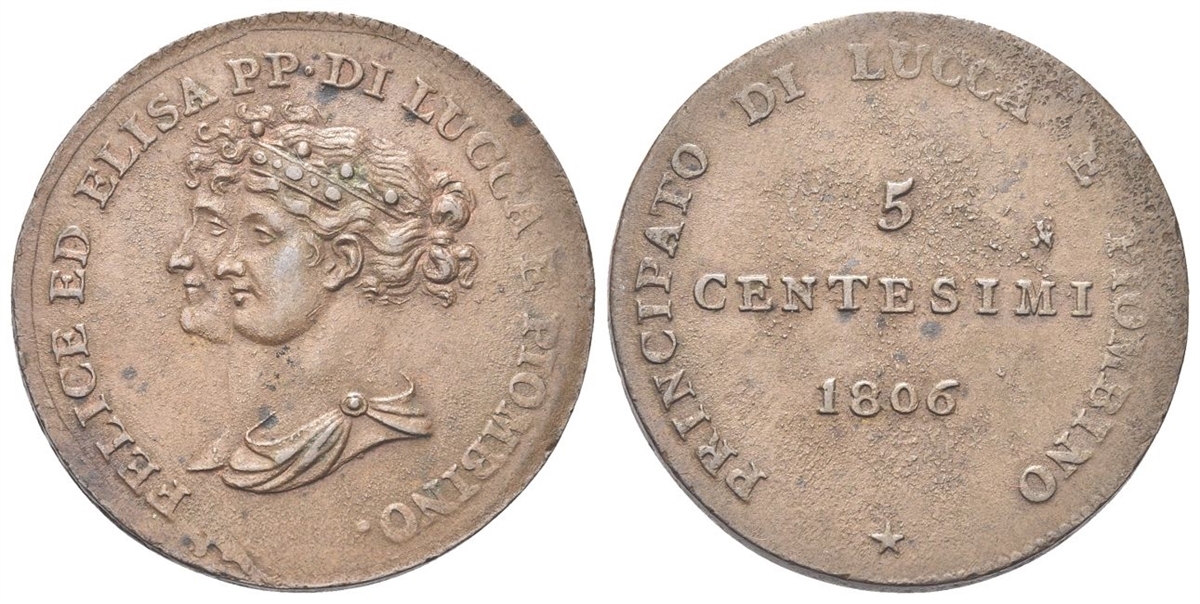 LUCCA E PIOMBINO - Felice e Elisa Baciocchi, 1805-1814. - 5 Centesimi 1806.