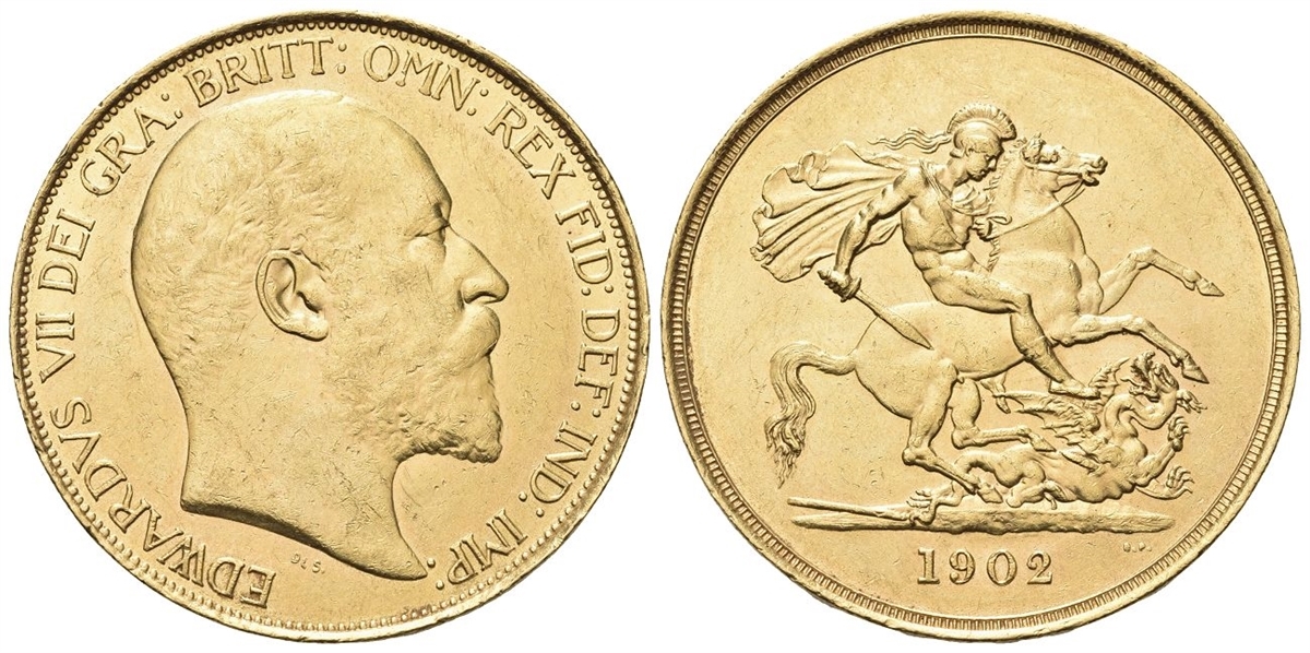 GRAN BRETAGNA - Edoardo VII, 1901-1910. - 5 Sterline 1902.