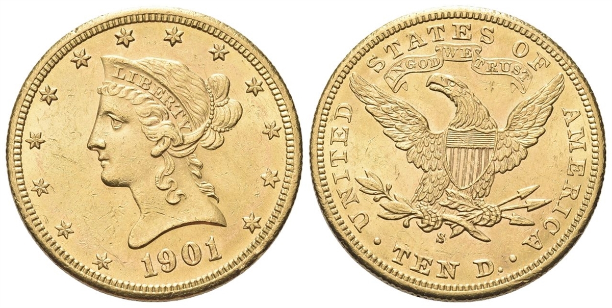 USA - Federazione. - 10 Dollari 1901 S, zecca di San Francisco.