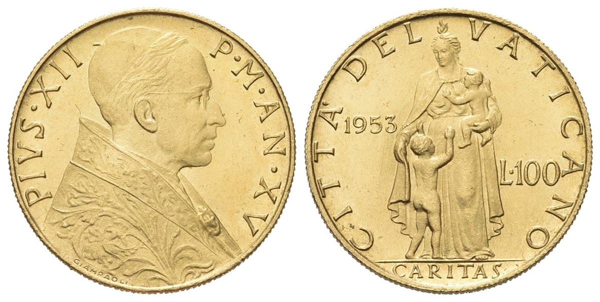CITTA' DEL VATICANO - Pio XII (Eugenio Pacelli), 1939-1958. - 100 Lire 1953 a. XV.