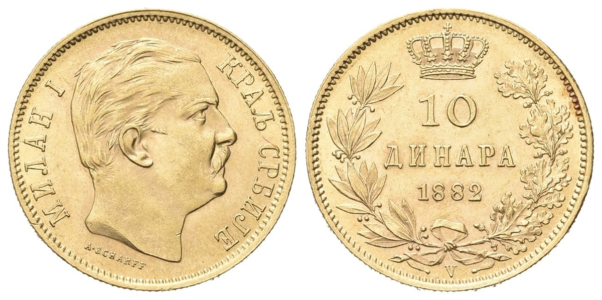 SERBIA - Milan Obrenovich IV, 1868-1889. - 10 Dinars 1882.