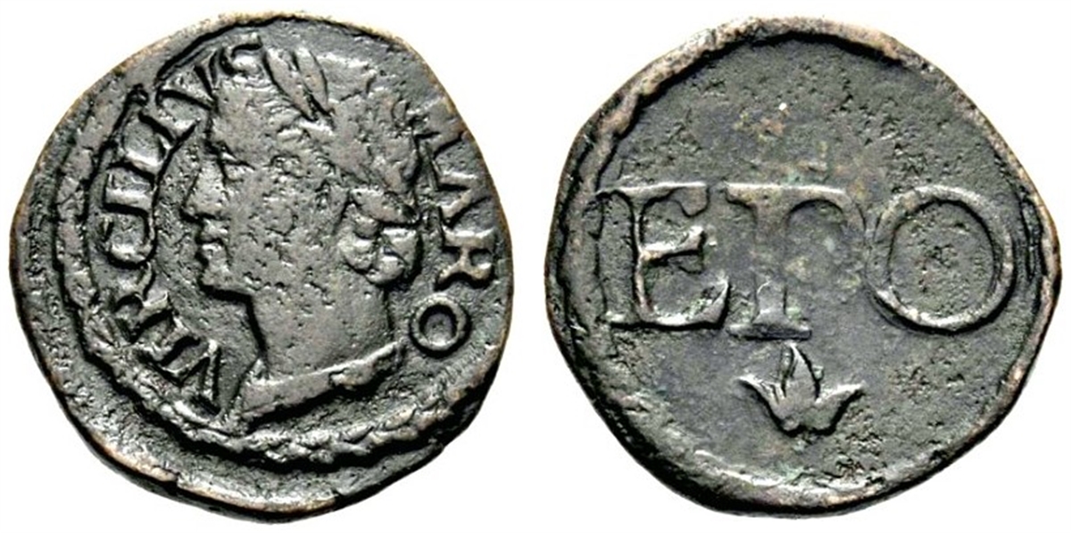 Dr. Testa laureata di Virgilio a s. Rv. Iscrizione su una riga.