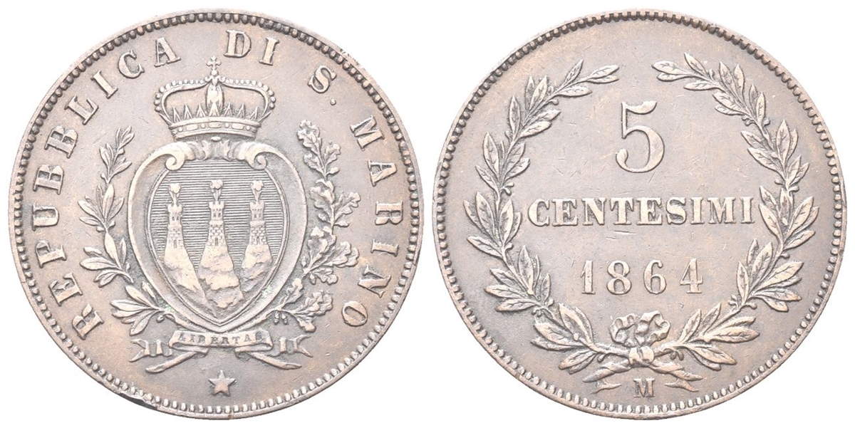 SAN MARINO - Vecchia monetazione, 1864-1938. - 5 Centesimi 1864.