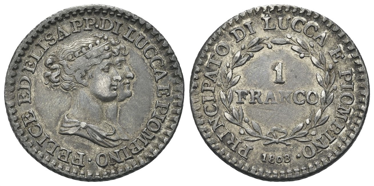 LUCCA E PIOMBINO - Felice e Elisa Baciocchi, 1805-1814. - 1 Franco 1808.