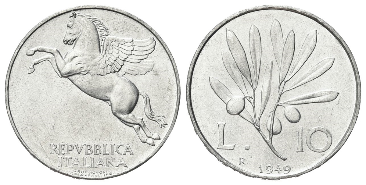 ROMA - Repubblica Italiana, dal 1946. - 10 Lire 1949.