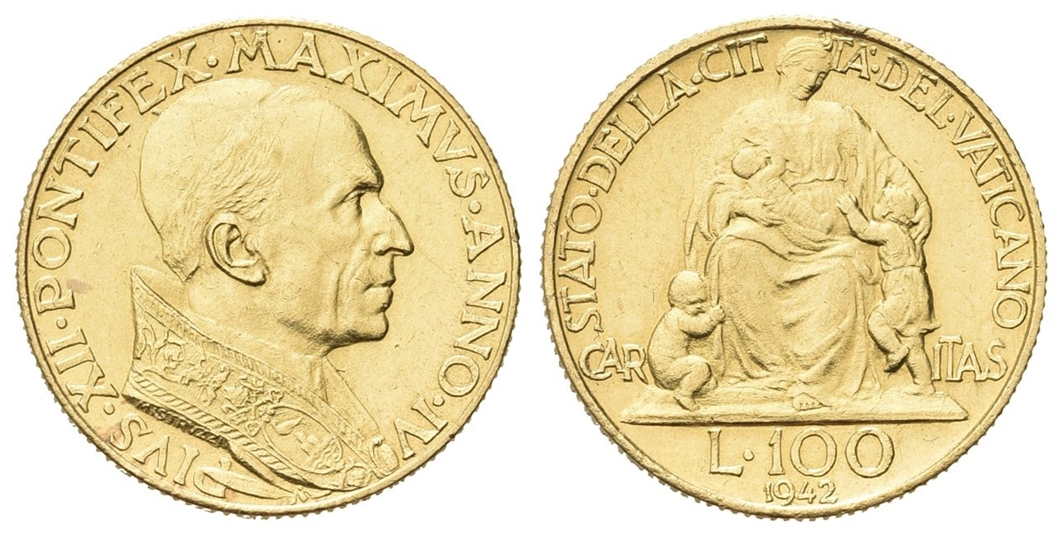 CITTA' DEL VATICANO - Pio XII (Eugenio Pacelli), 1939-1958. - 100 Lire 1942 a. IV.