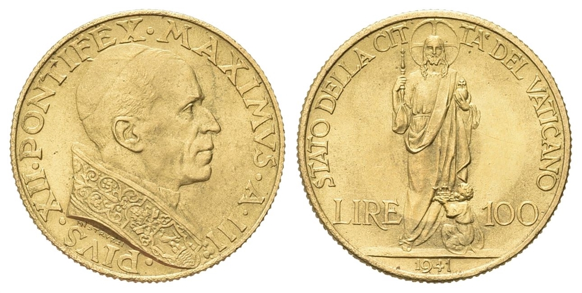 CITTA' DEL VATICANO - Pio XII (Eugenio Pacelli), 1939-1958. - 100 Lire 1941 a. III.