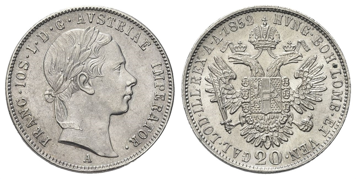 Francesco Giuseppe I d’Asburgo Lorena, 1848-1866. 20 kreuzer 1852, A.