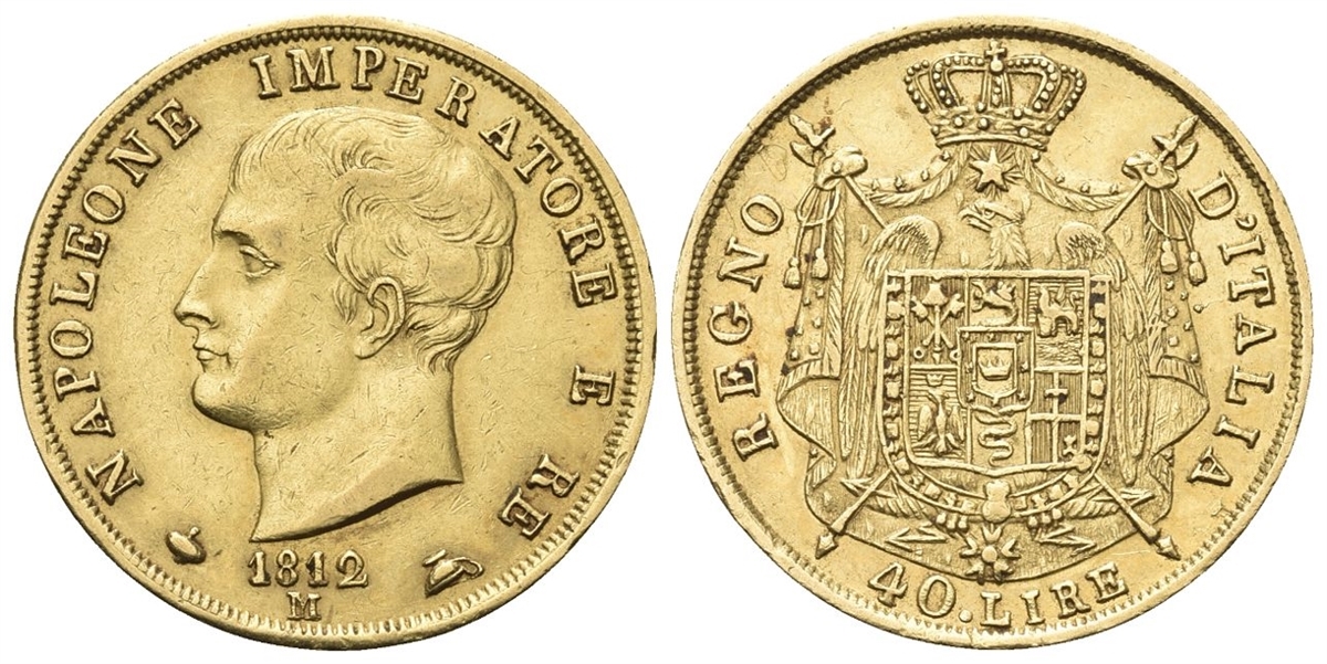 MILANO - Napoleone I Re d’Italia, 1805-1814. - 40 Lire 1812 puntali sagomati.