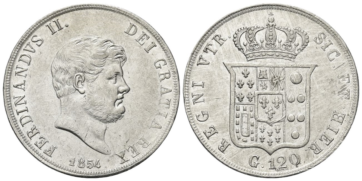 NAPOLI - Ferdinando II di Borbone, 1830-1859. - Piastra da 120 Grana 1854.