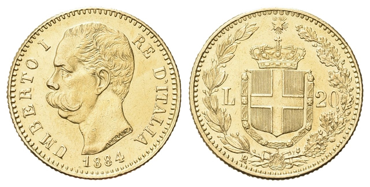 Umberto I, 1878-1900. 20 Lire 1884 Roma.