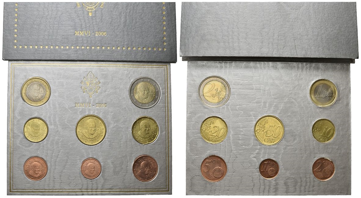 Benedetto XVI (Joseph Aloisius Ratzinger), 2005-2013. Serie divisionale 2006: 2 e 1 Euro; 50, 20, 10, 5, 2 e 1 Centesimo.