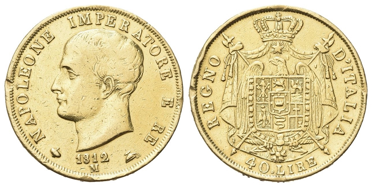 Napoleone I Re d'Italia, 1805-1814. 40 Lire 1812 puntali sagomati.