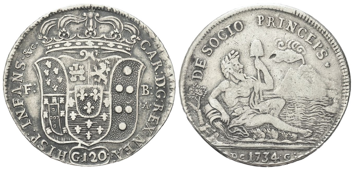 Carlo di Borbone, 1734-1759. Piastra da 120 Grana 1734 - I Tipo.