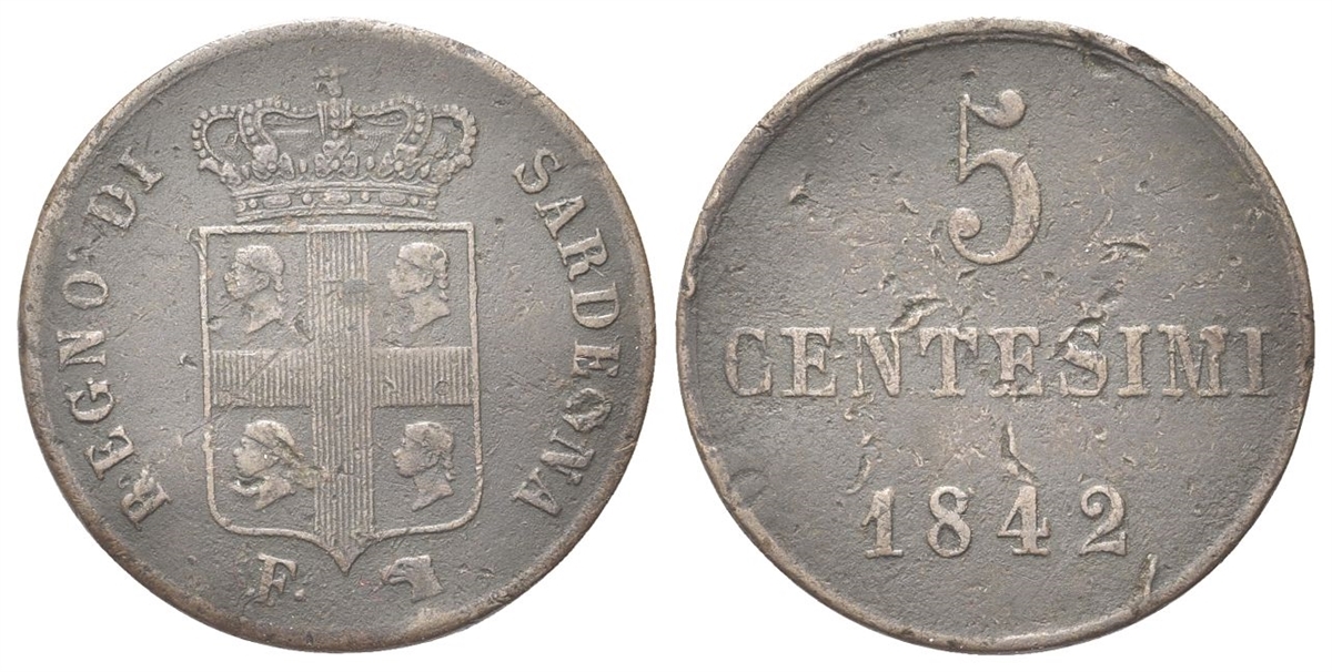 REGNO DI SARDEGNA - Carlo Alberto, 1831-1849. - 5 Centesimi 1842 Torino.