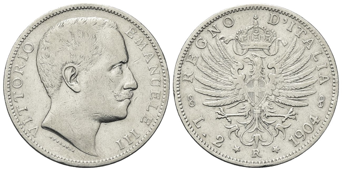 Vittorio Emanuele III, 1900-1943. 2 Lire 1904 Roma, Aquila Sabauda.
