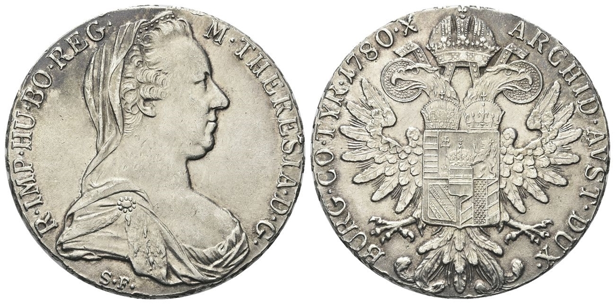 Dr. Busto velato dell’imperatrice rivolto a d. Rv. Aquila araldica bicipite sormontata da corona, con ali spiegate stilizzate e stemma austriaco sul petto.
