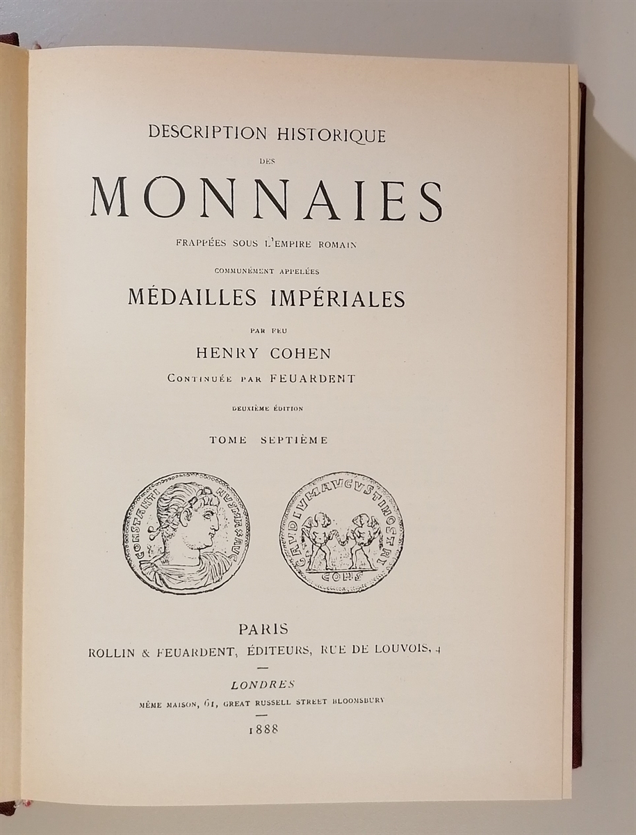 ROMA IMPERIALE - H. Cohen - Déscription historique des Monnaies sous l'Empire Romain Tome VII Ristampa anastatica dell’edizione di Parigi del 1888
