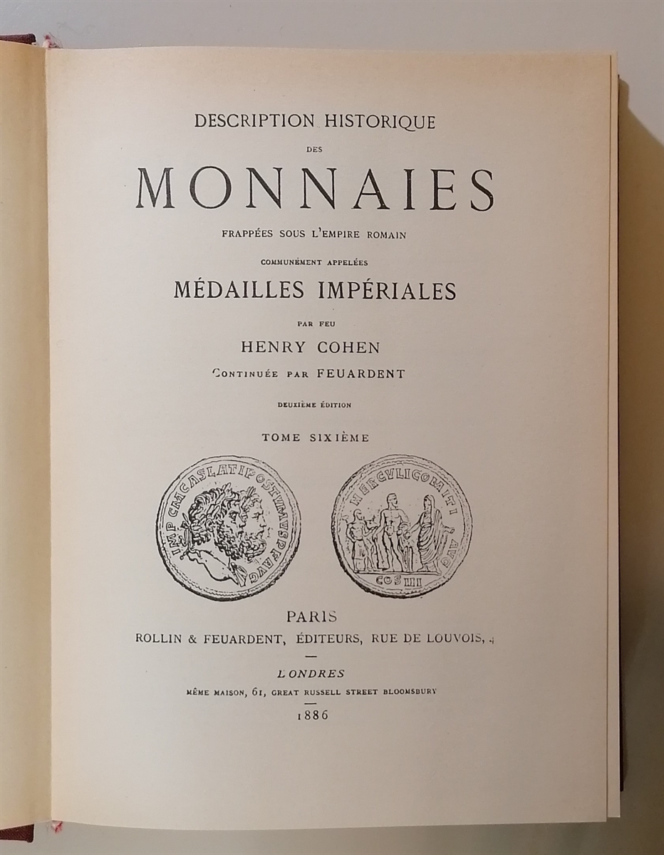 ROMA IMPERIALE - H. Cohen - Déscription historique des Monnaies sous l'Empire Romain Tome VI Ristampa anastatica dell’edizione di Parigi del 1886