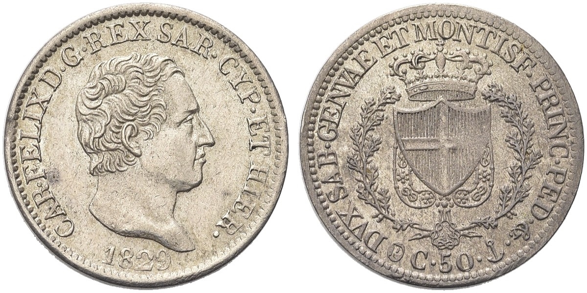 Carlo Felice, 1821-1831. 50 Centesimi 1829 Genova.