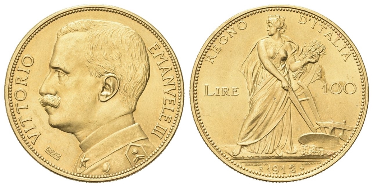Vittorio Emanuele III, 1900-1943. 100 Lire 1912 Roma, Aratrice.