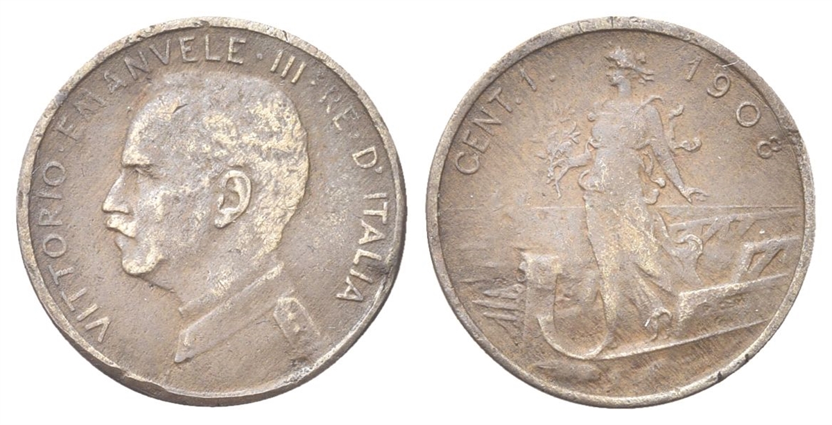REGNO D’ITALIA - Vittorio Emanuele III, 1900-1943. - Centesimo 1908 Roma, Italia su prora.