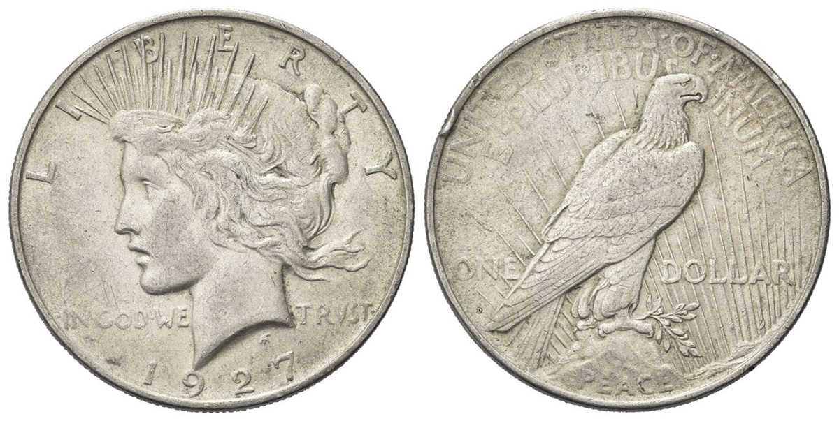 Federazione. Dollaro Peace 1927 D, zecca di Denver.