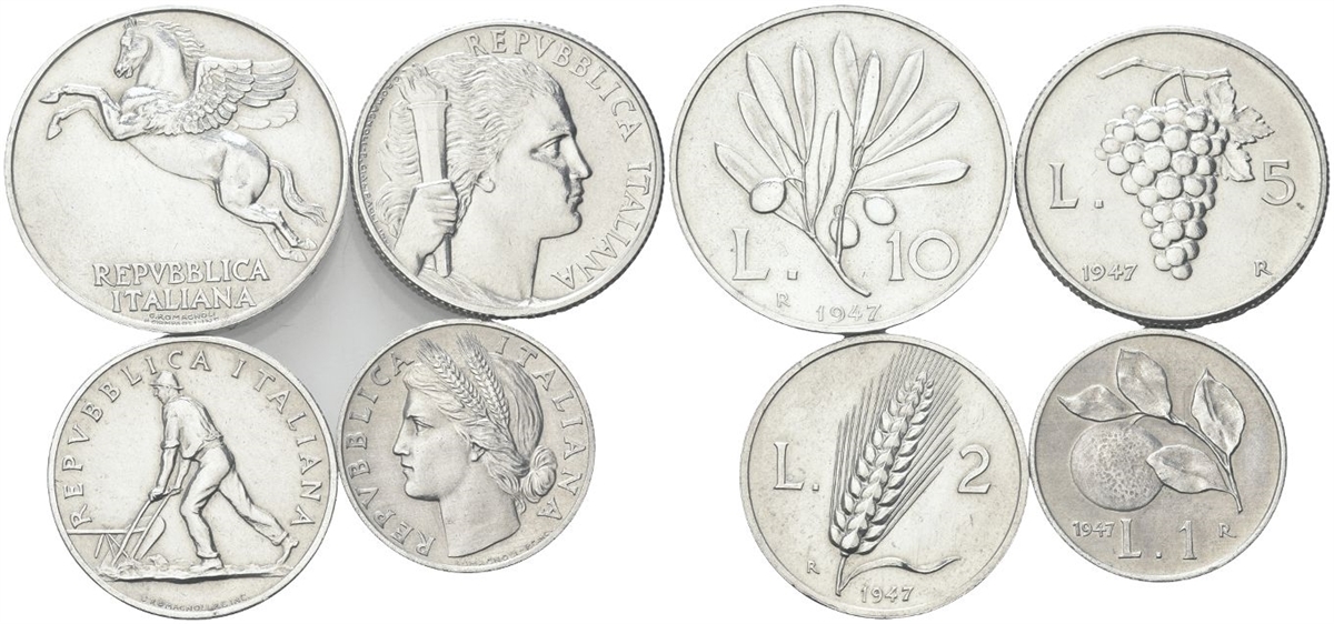 ROMA - Repubblica Italiana, dal 1946. - Serie 1947 composta da 4 valori: 10 Lire, 5 Lire, 2 Lire e Lira.