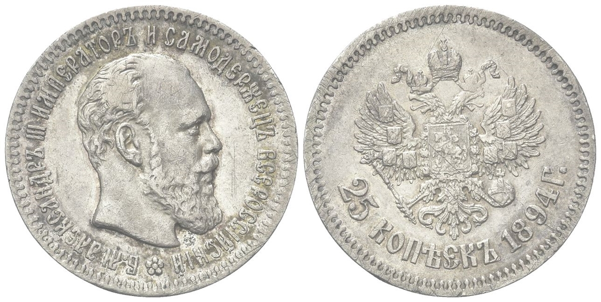 RUSSIA - Alessandro III, 1881-1894. - 25 Kopechi 1894.